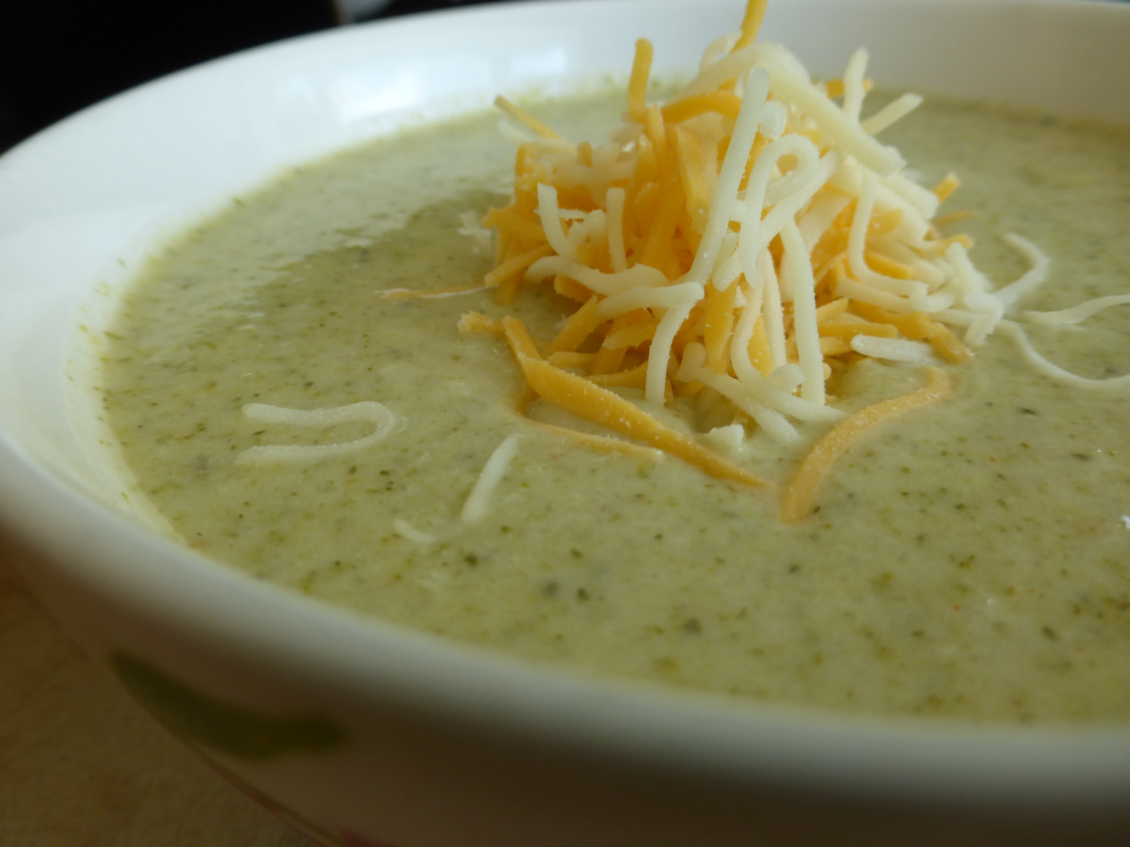 2 large heads broccoli, cut into 1-2” pieces1 large brown onion, diced4 tablespoons extra virgin olive oil4 cups chicken broth2 medium carrots, dicedSalt and pepper, to tastePinch of cayenne pepper2 tablespoons melted butter2 tablespoons flour1 cup ½ and ½ or heavy whipping cream2 cups shredded cheddar cheeseSaute broccoli pieces and onion in olive oil in large, heavy stock pot until onion is soft (about 5 minutes). Add chicken stock, carrots, salt, pepper and cayenne. Bring to boil, then reduce to simmer for 30 minutes. Remove from heat and either use an immersion blender to blend the soup into a puree consistency, or if you don’t have immersion blender allow mixture to cool at least 5 minutes and carefully place small portions of the soup in a regular blender and puree a little at a time. Be VERY careful doing this with hot liquids, always leaving the blender lid slightly ajar so as not to for a vacuum while blending). Once blended, return all soup to pot. In a small cup, stir the flour into the melted butter. Add this to the hot soup and return the soup to a medium heat to bring back to a simmer for 5 minutes (this will thicken the soup up).Slowly stir in the ½ and ½ or heavy whipping cream and cheese and stir well.